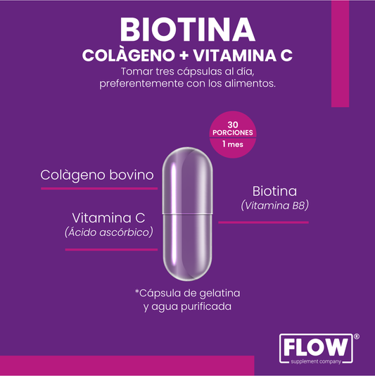 Biotina + Colageno + Vitamina C / 90 capsulas de 500 mg c/u