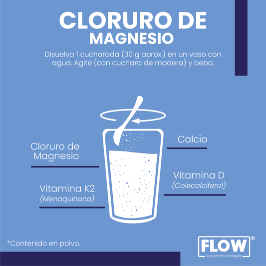 Cloruro De Magnesio + Vitamina K2 + Vitamina D + Calcio / 100 cápsulas de 500 mg. c/u