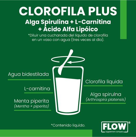 Clorofila líquida + Alga Spirulina + L-Carnitina + Acido Alfa Lipoico de 500 ml