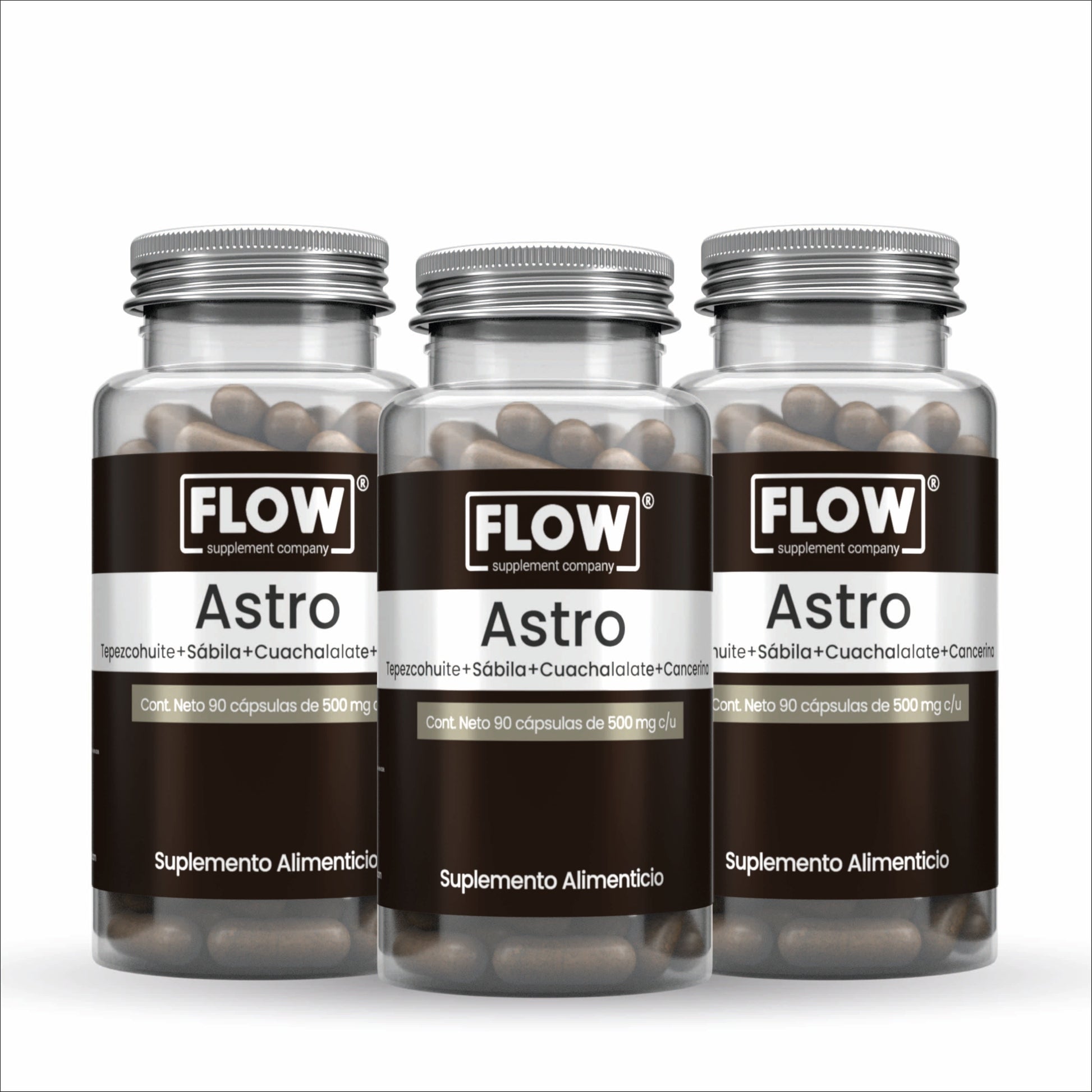 Suplemento de origen 100% natural, fórmula a base de plantas: Tepezcohuite, Sábila, Cuachalalate y Cancerina. Astro de FLOW, es libre de aditivos y Gluten free.